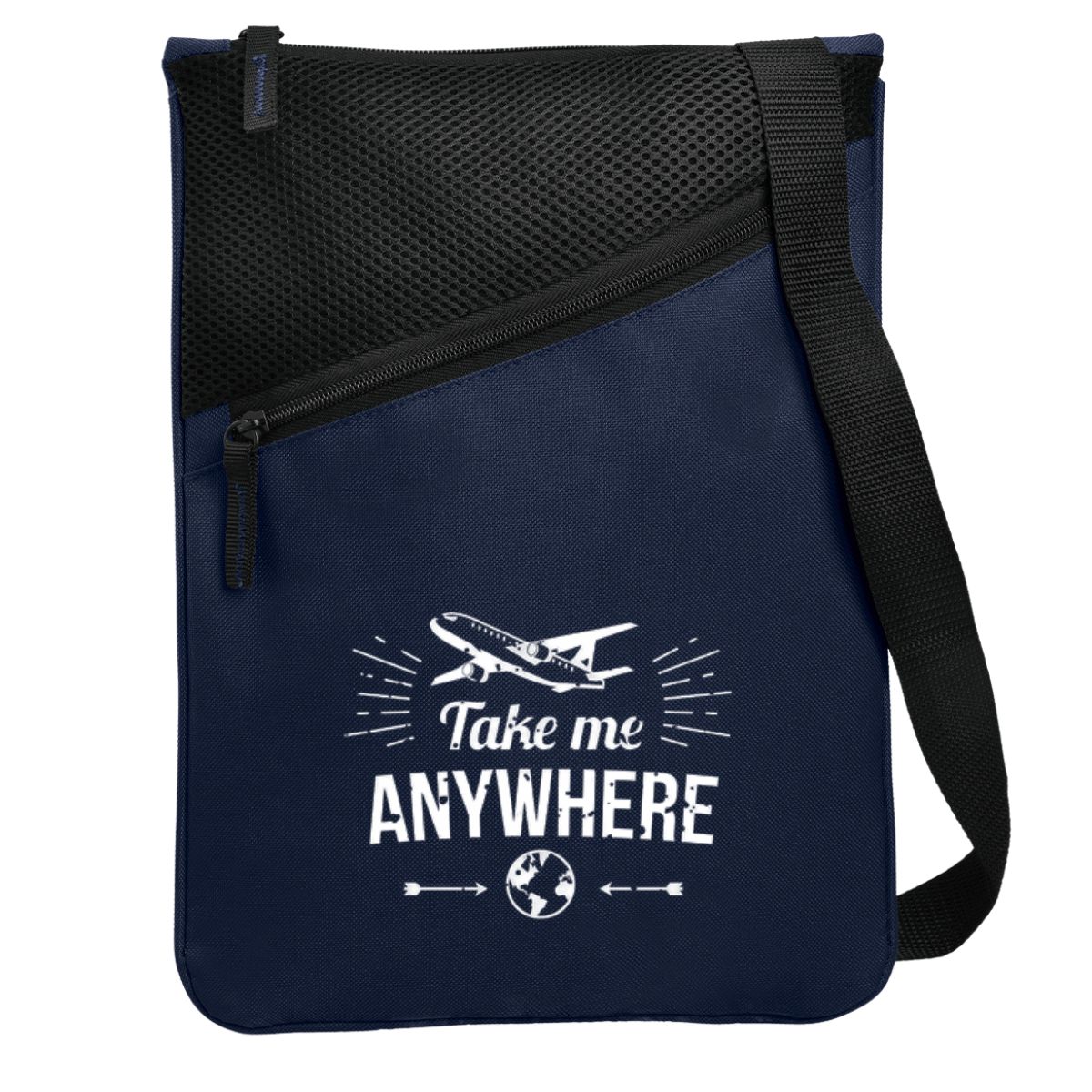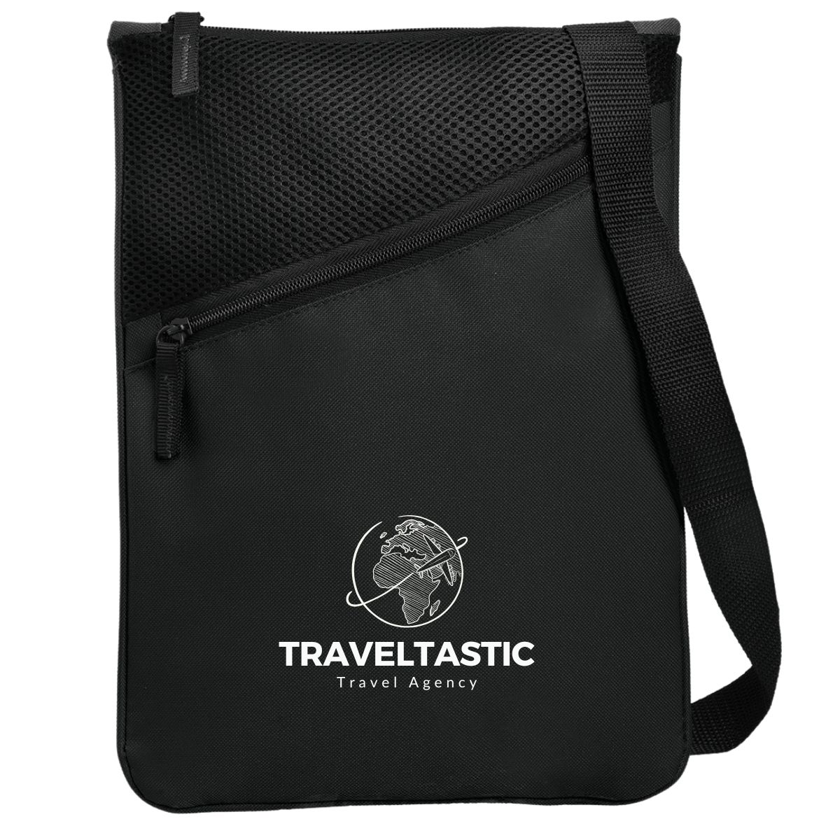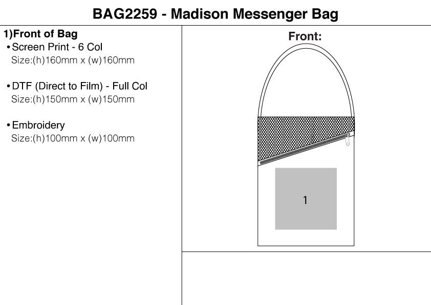 The Madison Messenger Bag is manufactured using 600 Denier material. The bag has a convenient rectangular shape and offers a front, zippered compartment with a mesh finish for additional or “quick access storage. The main compartment is large and zippered. The bag has an adjustable black shoulder strap.