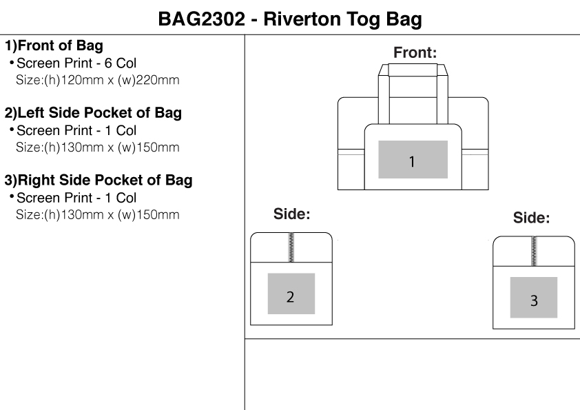 The Riverton Tog Bag is manufactured from 600 Denier material. The bag features a large, double-zippered main compartment, a large zippered front compartment, two front slip pockets, a padded carry handle, and a long, adjustable shoulder strap.