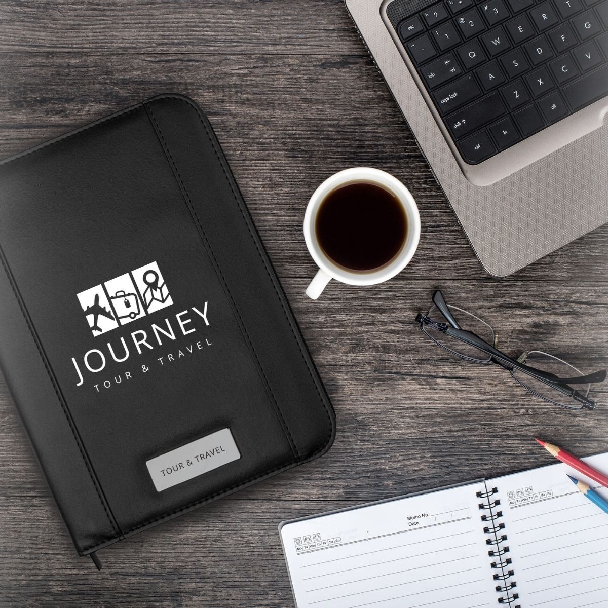 The Atherton A5 Folder is every organizer's dream. Crafted from premium PU this folder offers a single zip to safeguard your items. The interior of the folder consist of multiple storage compartments, including a single zippered storage pocket and a large pen loop.