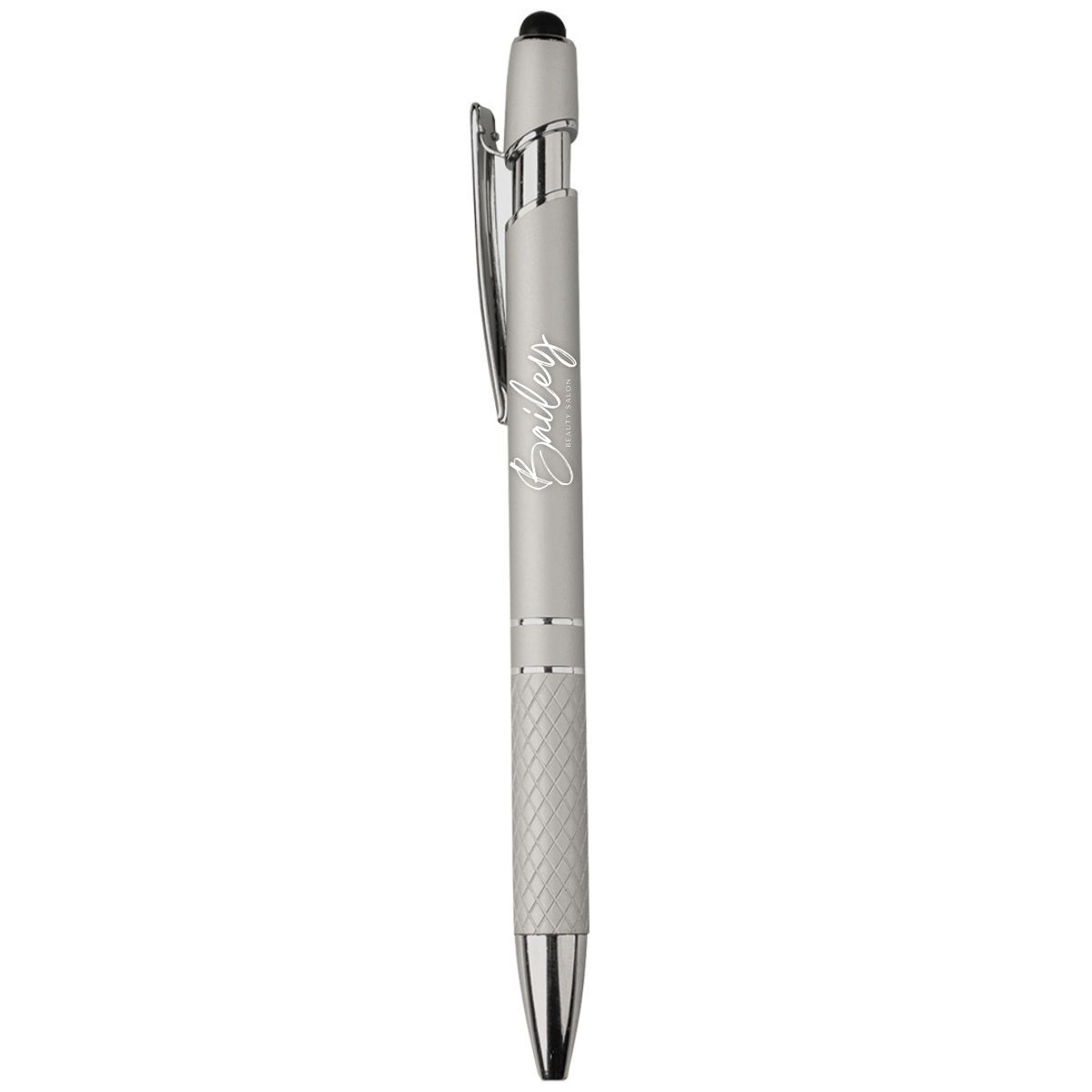 - PEN2172 – Novel Stylus Pen: Made from aluminium with a sleek barrel, metal tip, and back, this pen includes a built-in stylus for versatile use. Writes smoothly with black German ink for an elegant and professional finish.