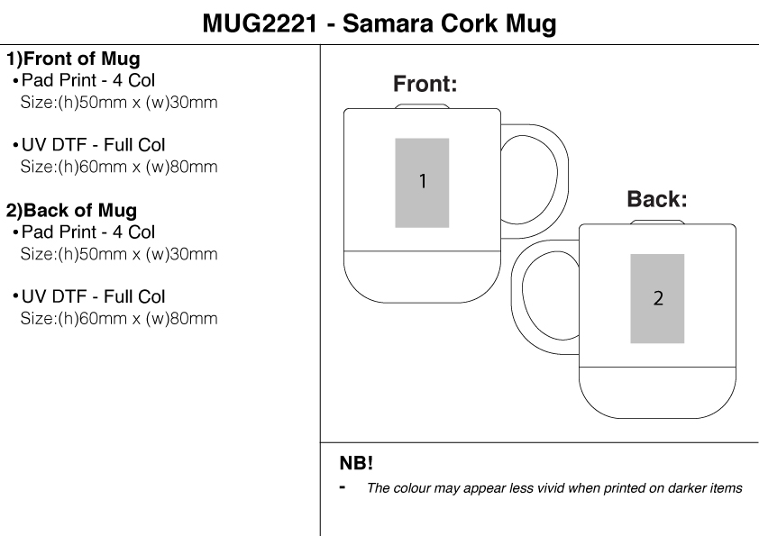 The Samara Cork Mug is manufactured from Ceramic and can accommodate up to 300ml of liquid, comfortably. The mug offers a stylish and sleek finish, with a matching handle and leak-proof travel lid. The bottom of the mug features a stylish eco-friendly cork design. *Please note that this product is not microwave or dishwasher safe*