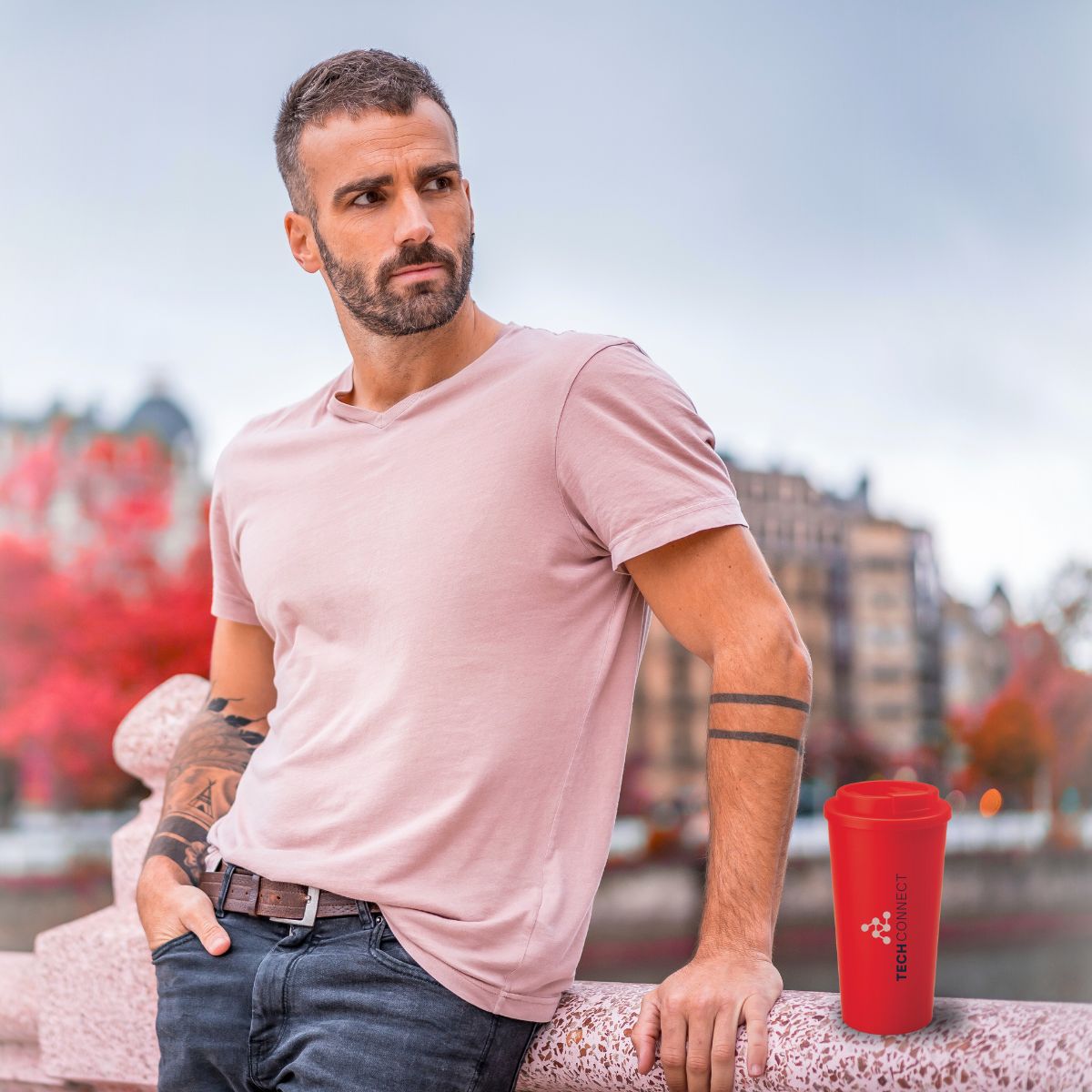 The 500ml is your on-the-road, on-the-go companion. Manufactured of Plastic, this mug is double walled and the perfect coffee companion. The mug has a matching coloured lid with a convenient open and close, non spill mechanism on the top of the mug with a flip up drinking cap. Additional benefits include, double walled insulation. The mug has the capacity to hold 500 milliliters of liquid. *Please note that this product is not microwave or dishwasher safe*