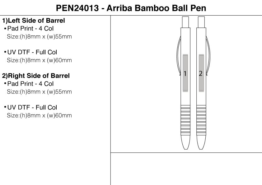 The Arriba Bamboo Ballpoint Pen is manufactured from bamboo and wheat straw. This sleek pen boasts a plastic clicker and clip, an eco-friendly wheat straw barrel and a plastic tip. It also offers a easy grip silicone front, ensuring ultimate comfort. Designed with versatility in mind, it writes effortlessly with smooth black ink.