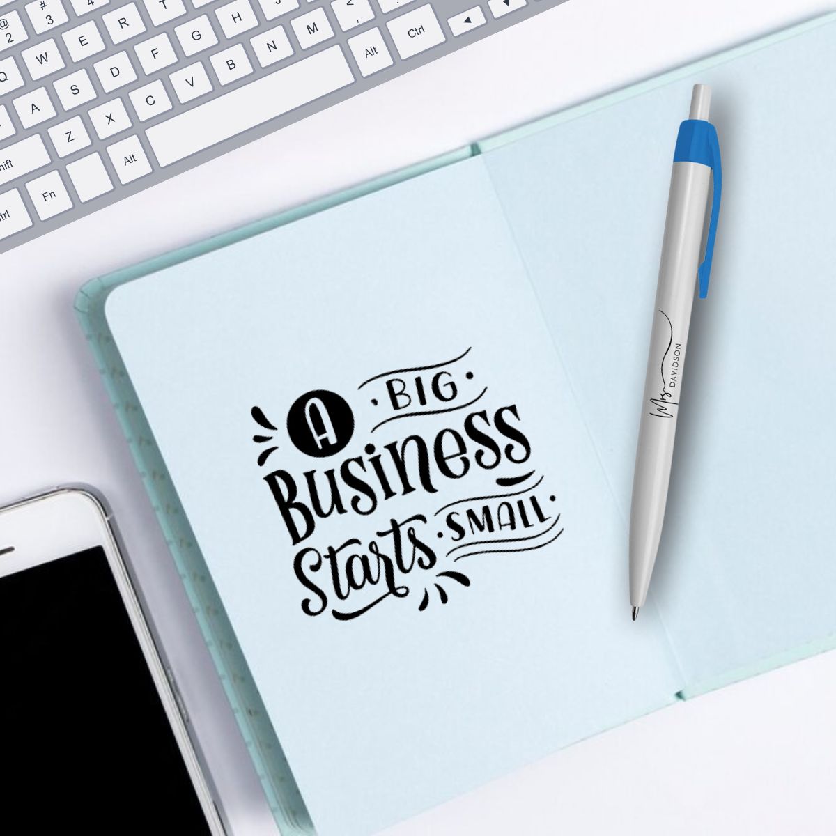 The Blue Ink Blaster Ballpoint Pen is a dynamic and engaging writing instrument that combines functionality with a distinctive design. Manufactured using plastic, this pen offers a plastic barrel as well as a plastic tip and back with blue German Ink. It is crafted with attention to detail, providing both style and functionality.