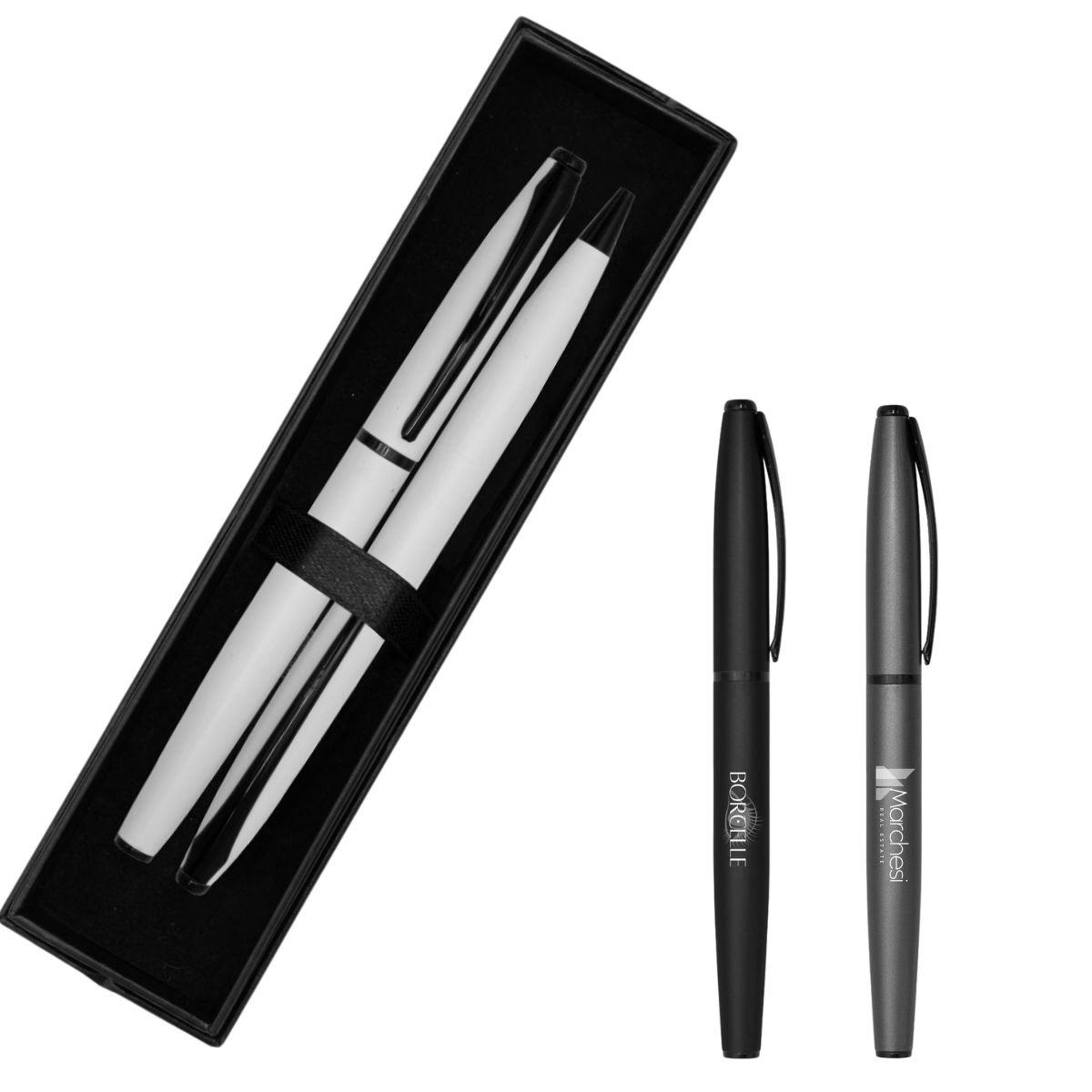 Azalea Ballpoint & Gel Ink Pen Set is a sophisticated pairing of style and performance. Each pen is crafted from high-quality aluminium with a smooth matte black finish, offering a modern and elegant aesthetic.