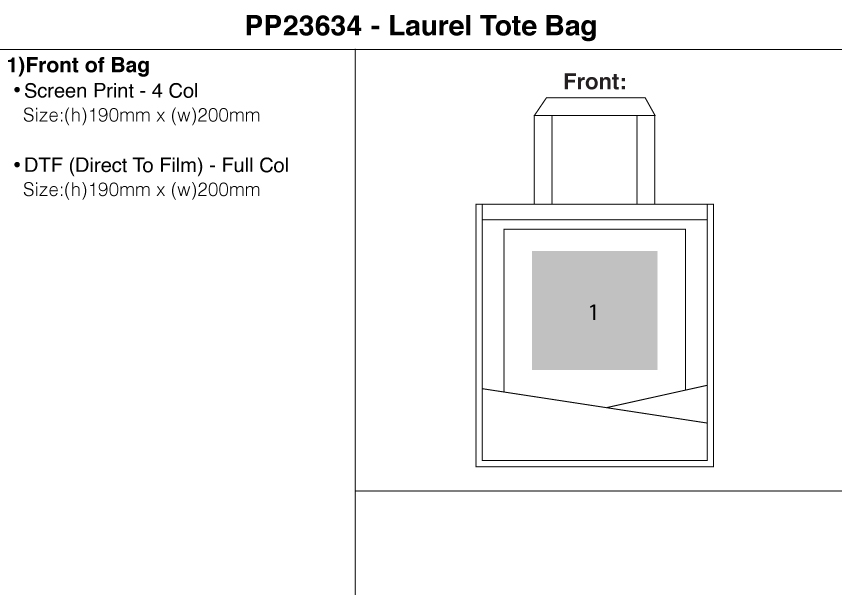 The Laurel Tote Bag is manufactured from 600 Denier material. It features two sturdy handles for easy carrying, a large main compartment, and a front, slip pocket for additional storage.