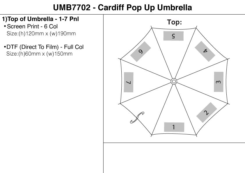 Meet the Cardiff Pop Up Umbrella, blending durability with style for rainy days. Crafted from high-quality 190T Polyester material, it offers reliable protection. With a zinc-plated metal shaft and eight vibrant panels, it's both sturdy and eye-catching. The grey EVA handle ensures comfortable handling, while the black rubberized tip adds a modern touch.