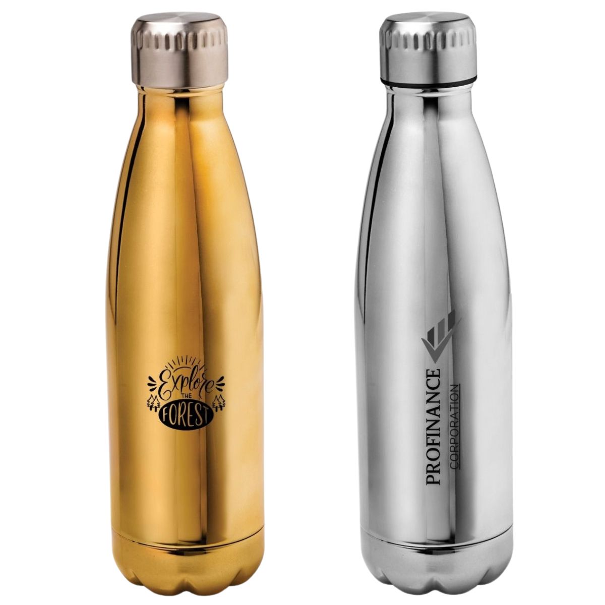 The 500ml Stryker Bottle is manufactured using Stainless Steel. This stylish bottle is BPA-FREE and double-walled, which keeps your cold liquids colder for longer and your hot liquids hotter for longer. The bottle is designed with a stylish metallic finish with a stainless steel metallic screw cap.