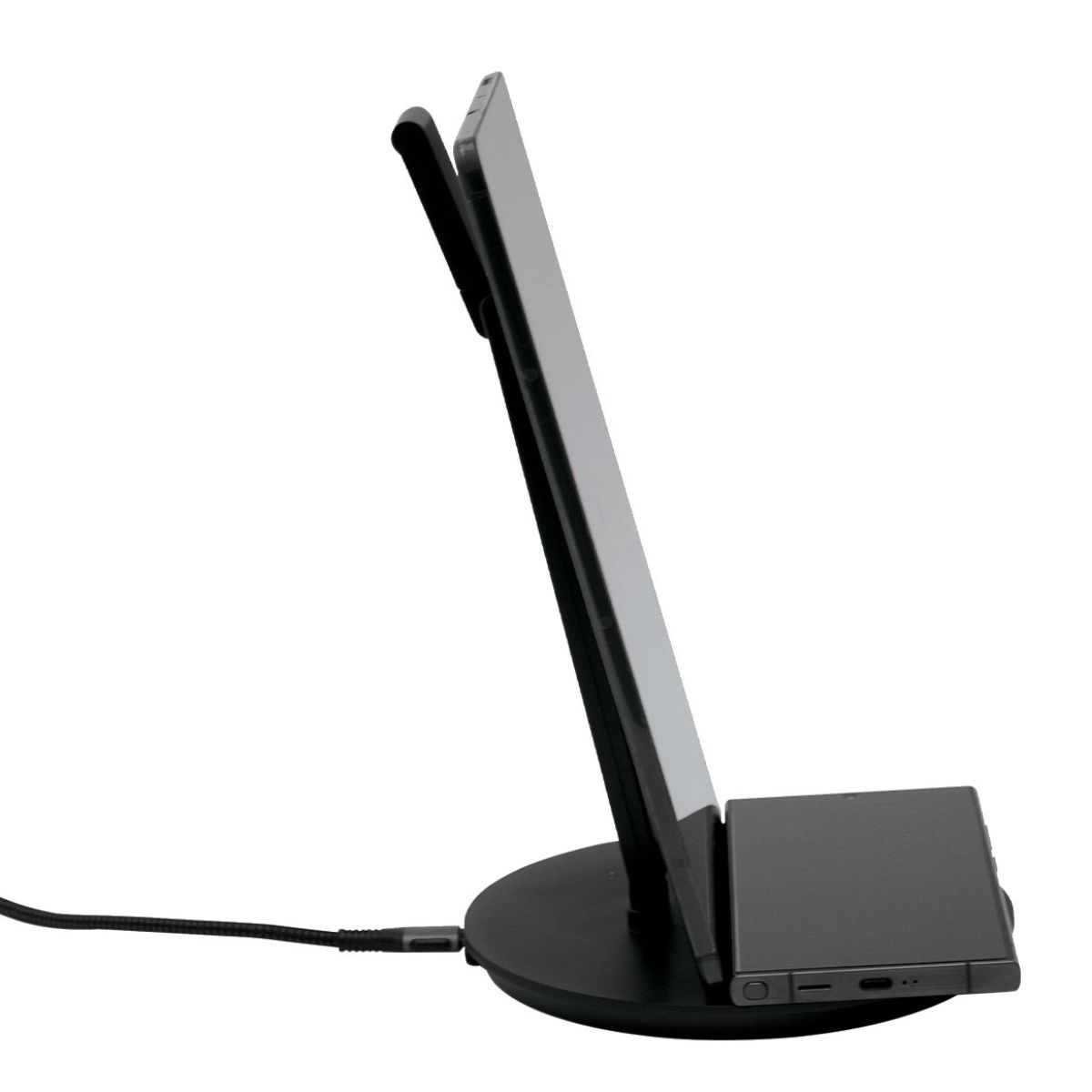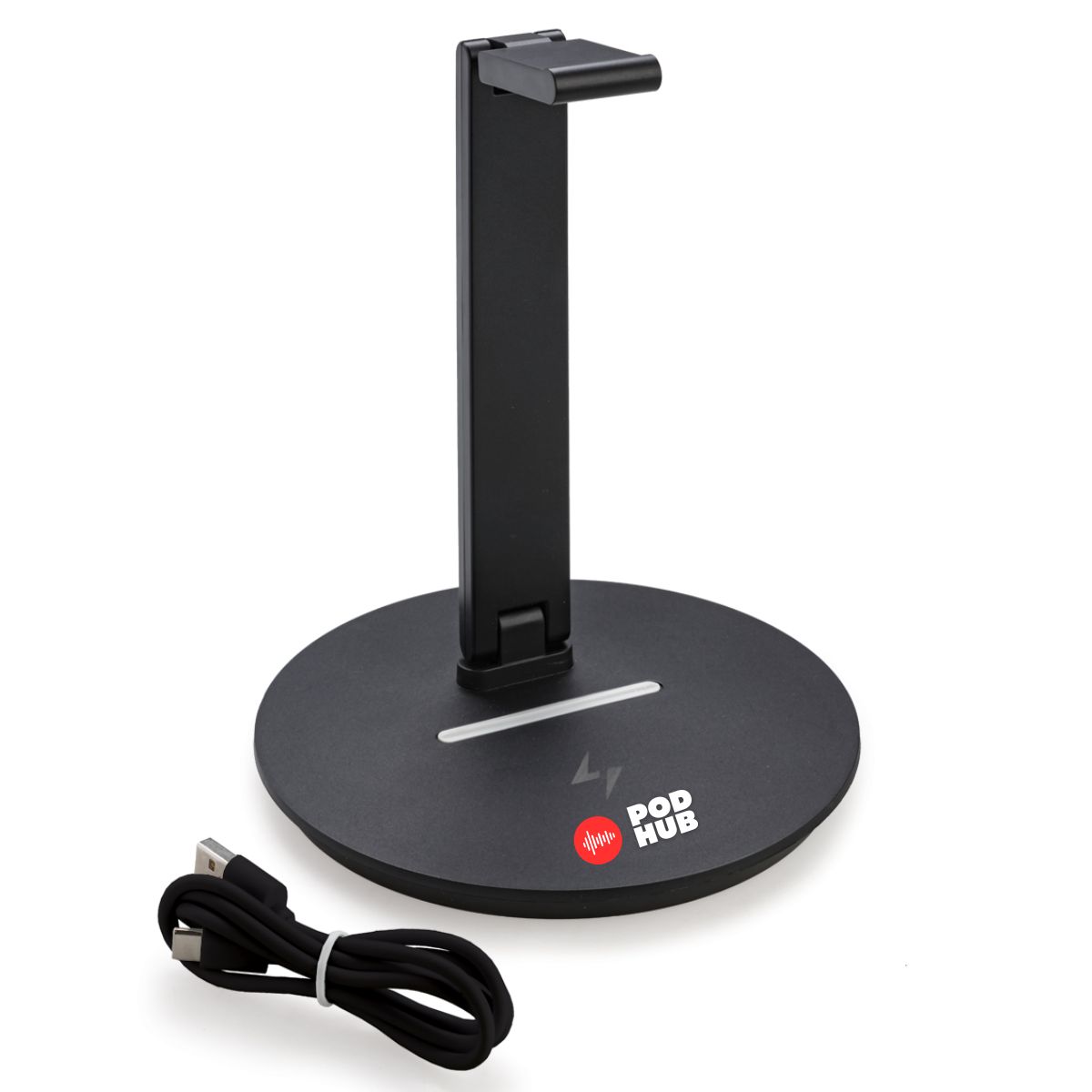 Revealing the Metro Versatile Tech Stand, your desk's neat and efficient organizer. It combines a headphone holder with a wireless charging station. Crafted from durable ABS plastic, it ensures reliability. Compatible with Type C input, it offers a 5V/1A wireless output. With a conversation efficiency of over 70%, it optimizes power usage.