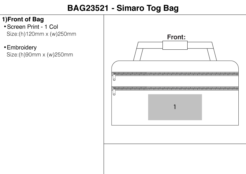 The Simaro Tog Bag is manufactured from high-quality, durable 1680 Denier material. The bag features a large, double-zippered main compartment, 2 large zippered front compartments, 2 zippered side pockets, a padded carry handle, and a long, adjustable shoulder strap.