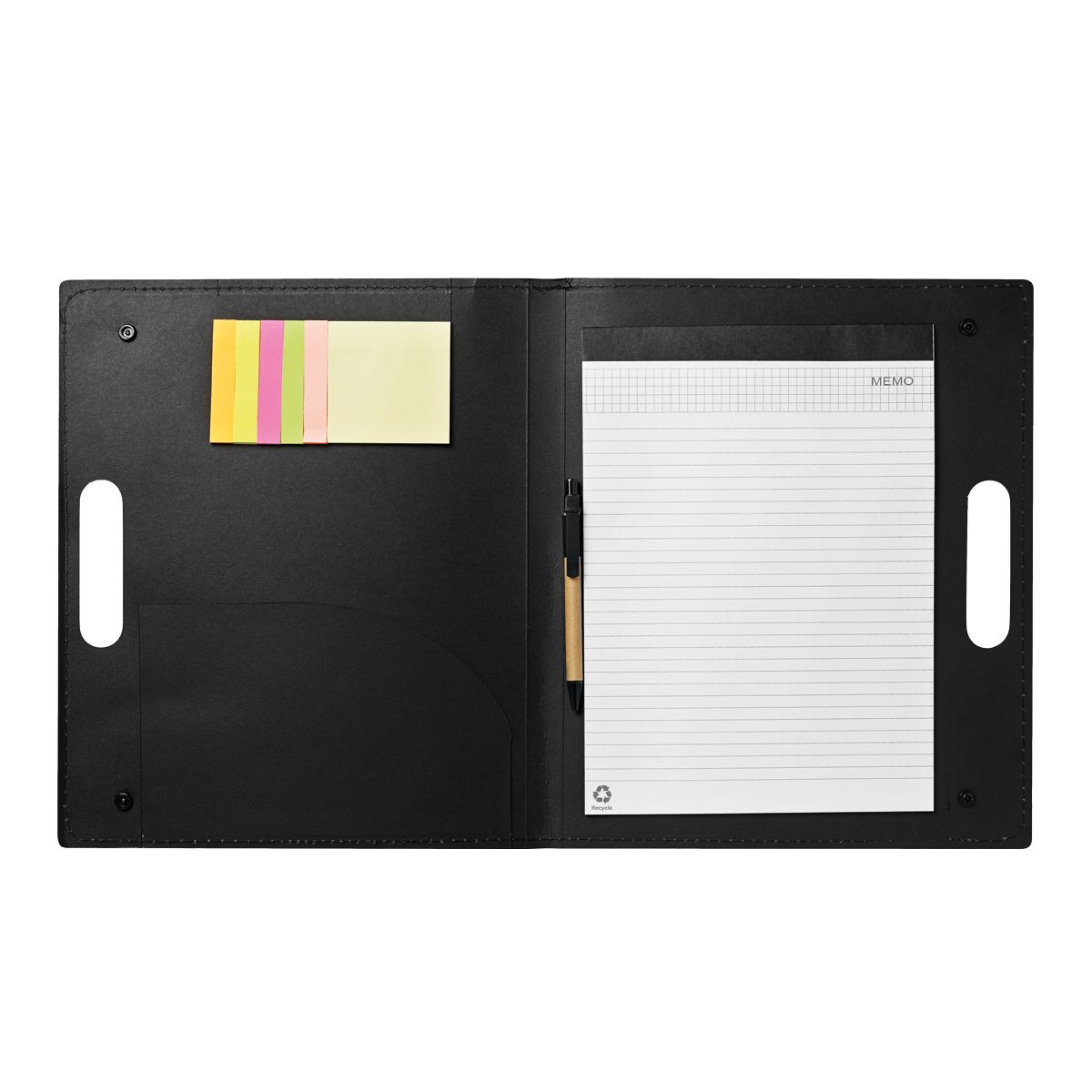 The Carton Conference Folder is the ideal on the go folder. Made from 600gsm recycled kraft paper. This folder includes a 20 page lined notepad, recycled black ink pen and 6 colour sticky notes.