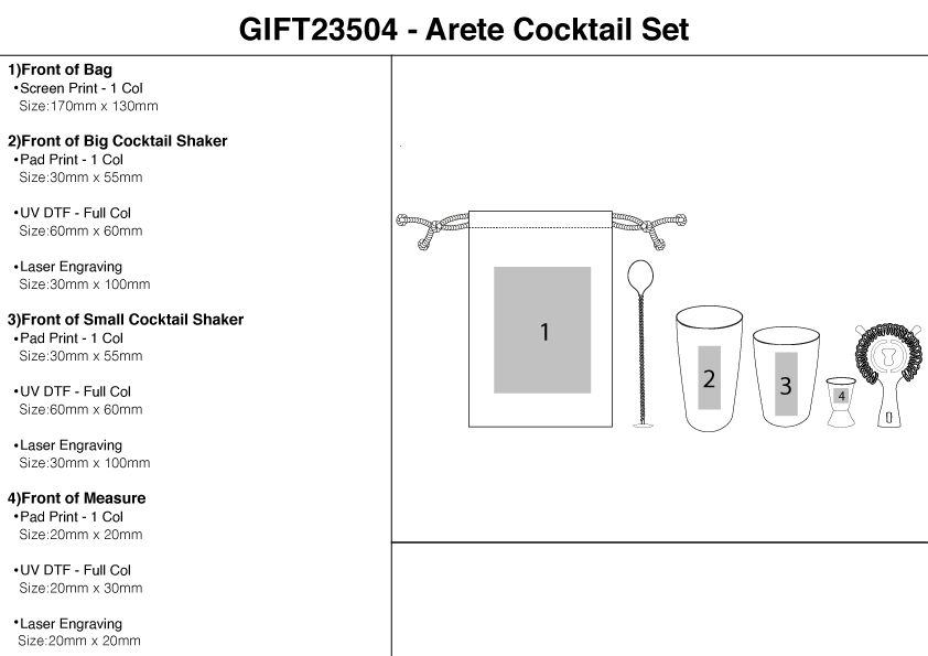 Showcasing our new Arete Cocktails Set, your gateway to mixology excellence! Crafted from high-quality stainless steel, the set includes a classic shaker tin, strainer, mixing spoon, and measuring tot for perfect cocktails every time with a capacity of 750ml. A polished exterior enhances the presentation, while a durable polyester bag keeps the set organized.