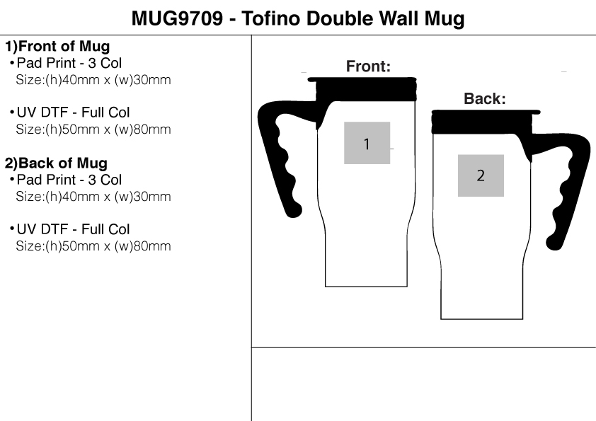 Revealing the Tofino Double Wall Mug, stylish and practical. Made of PP Plastic with a convenient carry handle. Features a non-spill seal and open/close slide mechanism on the lid. Doubled-walled insulation keeps beverages hot or cold. Holds 450ml of liquid, not suitable for microwave or dishwasher use. Hand wash item only.