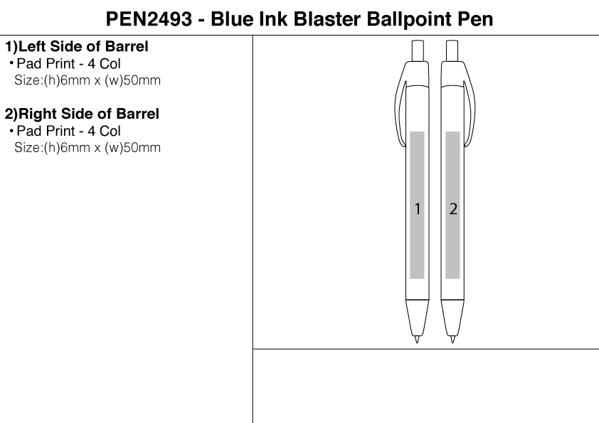The Blue Ink Blaster Ballpoint Pen is a dynamic and engaging writing instrument that combines functionality with a distinctive design. Manufactured using plastic, this pen offers a plastic barrel as well as a plastic tip and back with blue German Ink. It is crafted with attention to detail, providing both style and functionality.